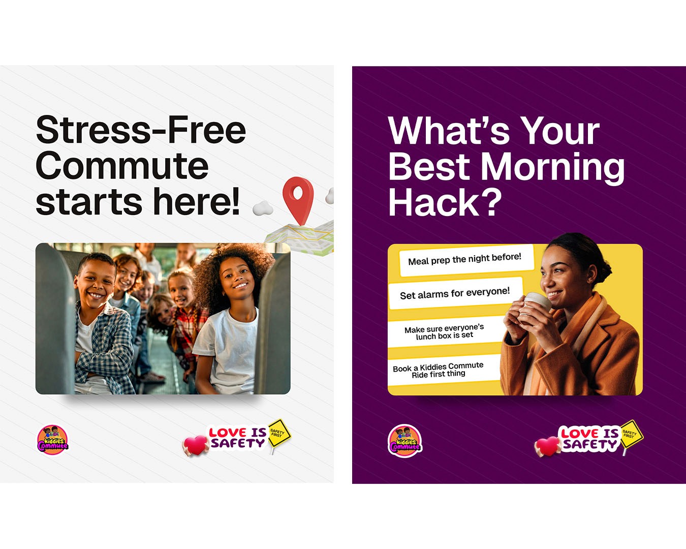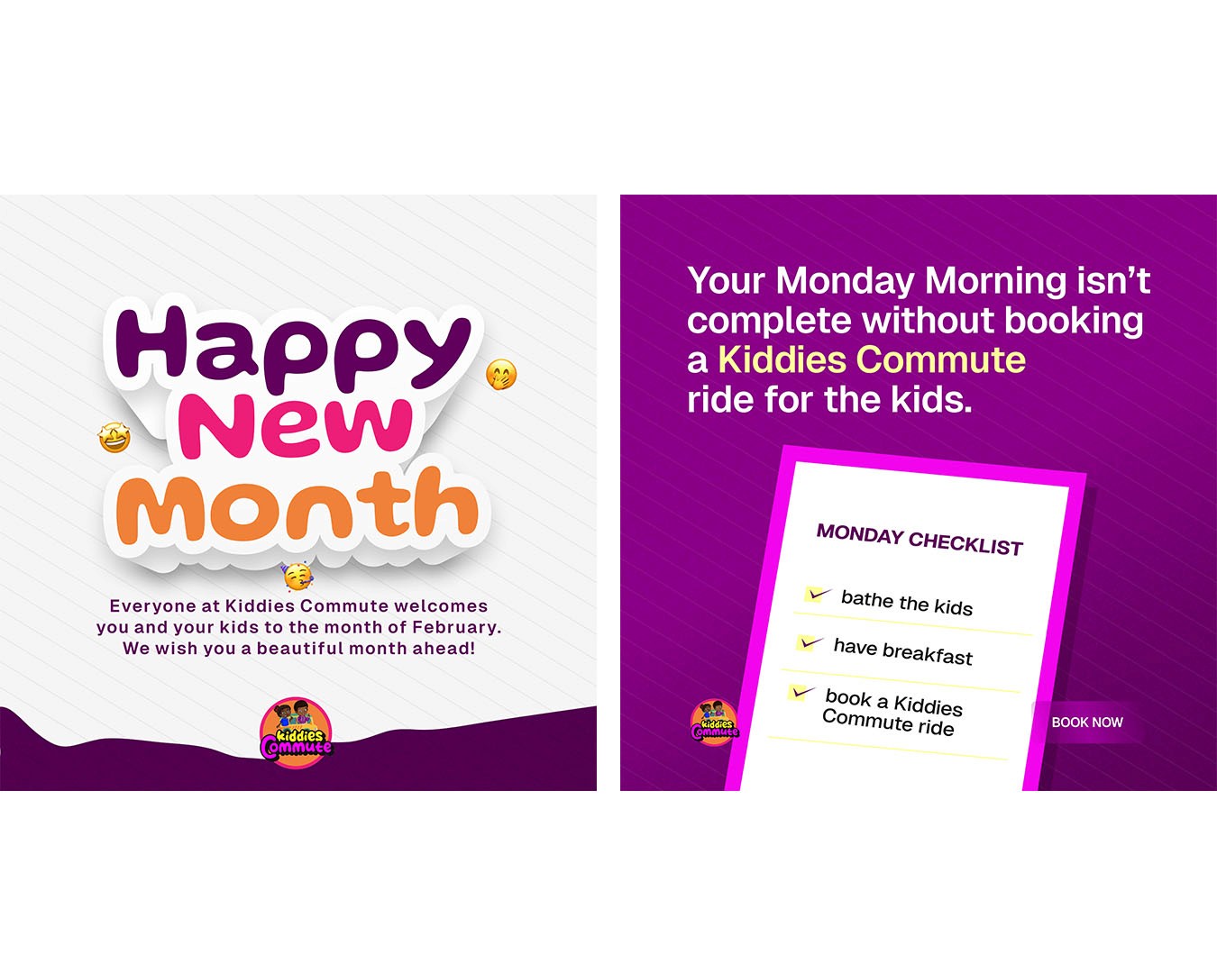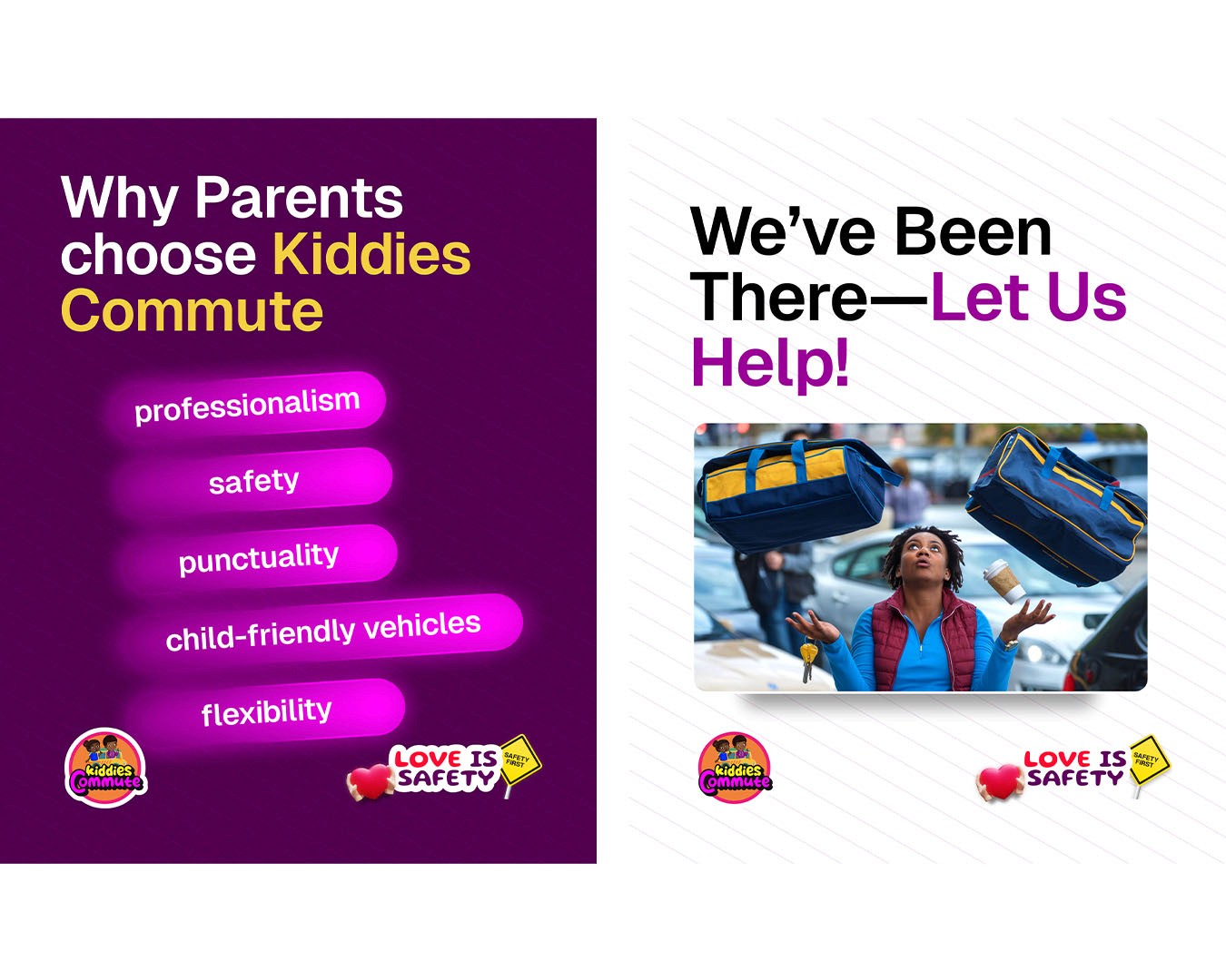 A curated selection of social media flyers designed for Kiddies Commute Zambia, showcasing clean layouts, sharp messaging, and a consistent visual identity tailored for digital engagement.